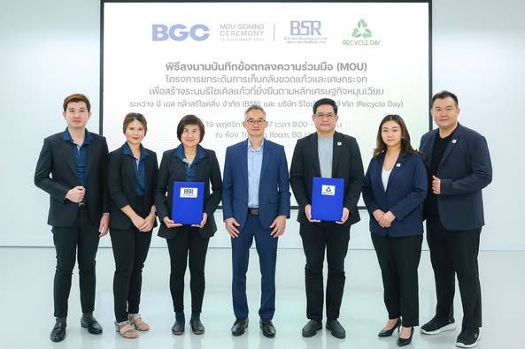 เมื่อวันที่ 19 เดือน พฤศจิกายน พ.ศ. 2567 บริษัท บีเอส กล๊าสรีไซคลิ่ง จำกัด และ บริษัท รีไซเคิลเดย์ จำกัด ได้ร่วมลงนามบันทึกข้อตกลงความร่วมมือ (MOU) ในโครงการพัฒนาการเก็บกลับขวดแก้วและเศษกระจก เพื่อสร้างระบบรีไซเคิลแก้วที่ยั่งยืนตามแนวคิดเศรษฐกิจหมุนเวียน (Circular Economy) โดยพิธีจัดขึ้น ณ ห้อง Training Room, BG Hall